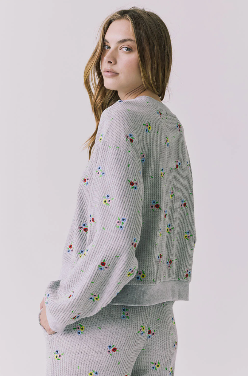 qually suited for layering or standalone wear, the Terra pullover features delicate ditsy embroidery on soft heather grey fabric.