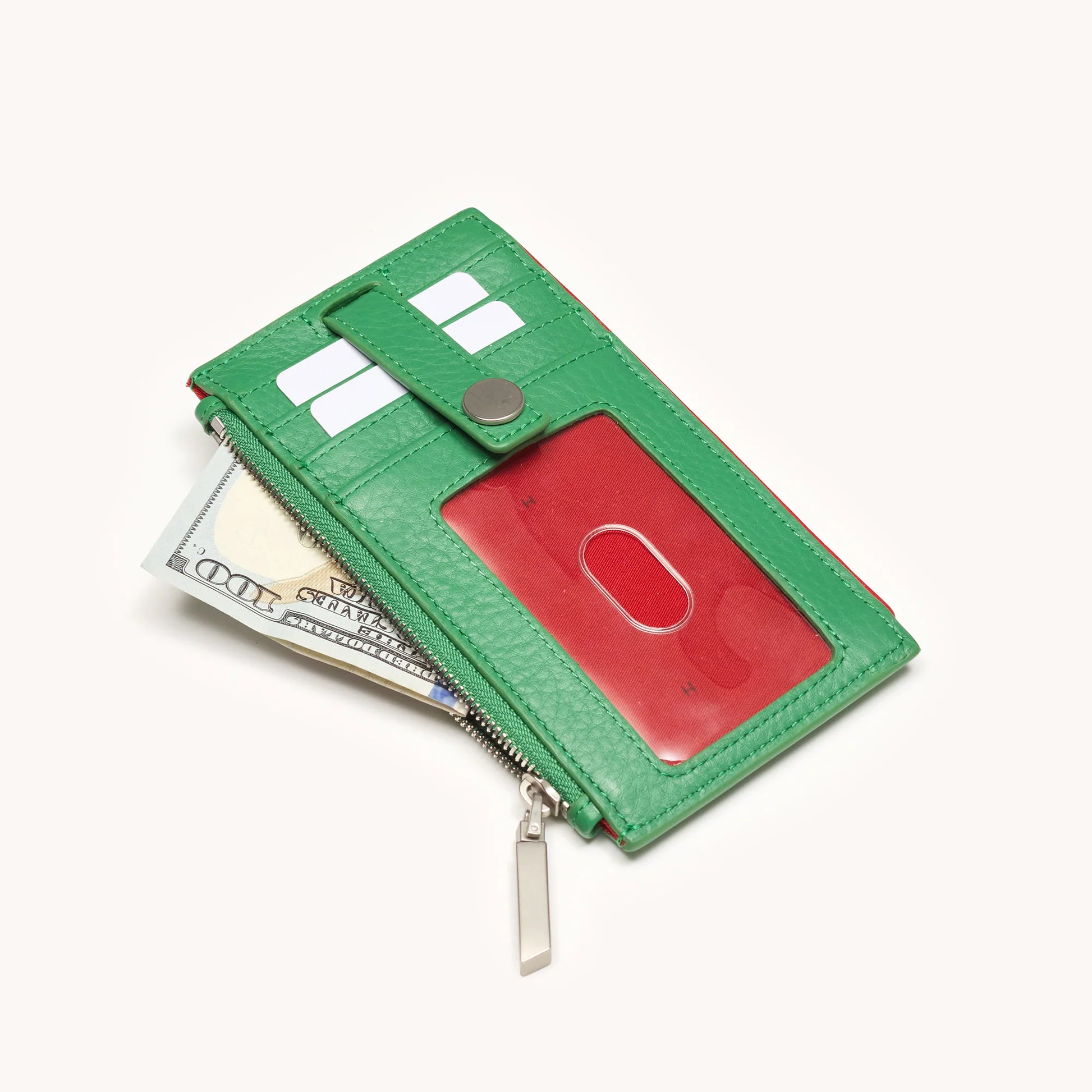 Your schedule is booked. That's why we've created one essential wallet that conquers every calendar entry. Stash credit and transit cards in up to 8 secure slots, and store meter change in one zippered pocket. Plus, enjoy a clear ID slot when that cute bouncer asks for a peek at your license.