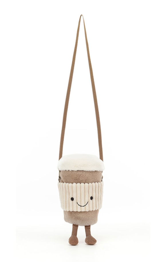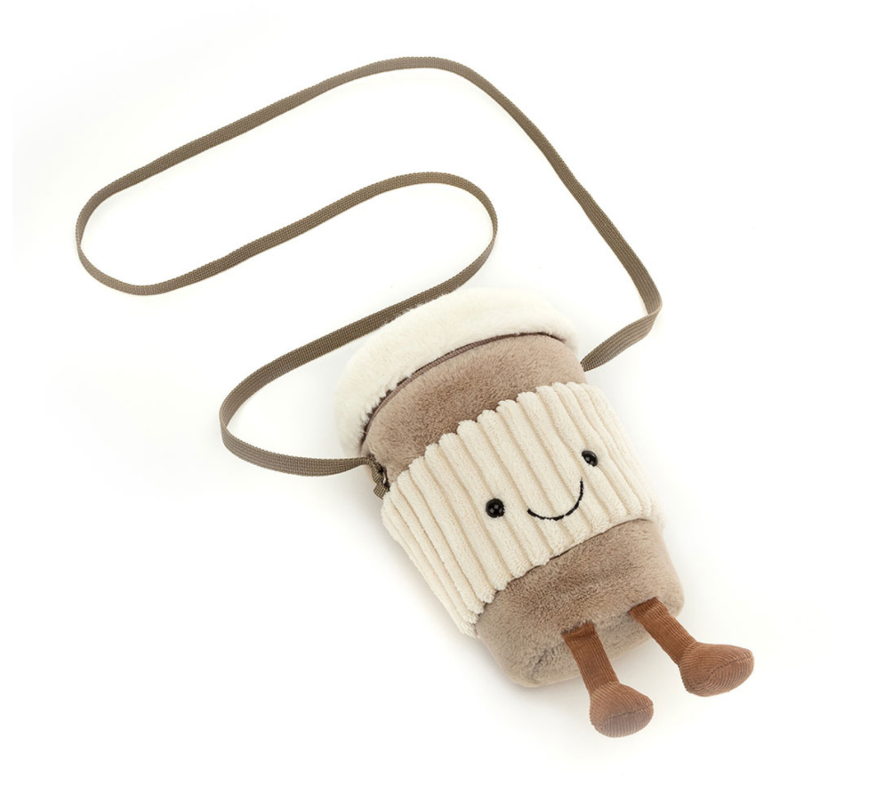 Dangling legs, neat zip-top, and soft mocha hues: the Amuseables Coffee-to-Go Bag is your new favourite on-the-go essential.