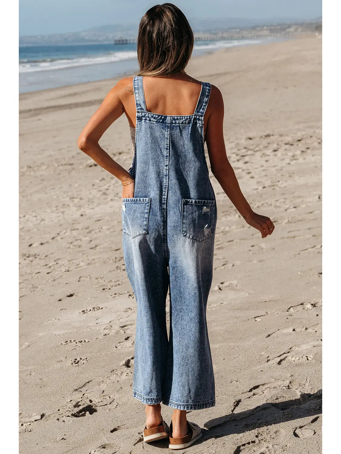 Stretchy denim overalls. Daily comfort with sense of fun.