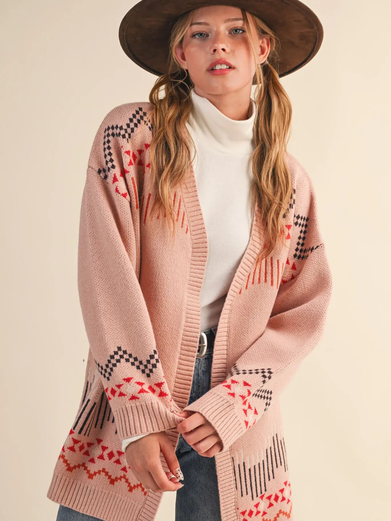 Relaxed, Oversized Open Cardigan. A cozy cowboy sweater for hanging around the bonfire or wandering downtown.