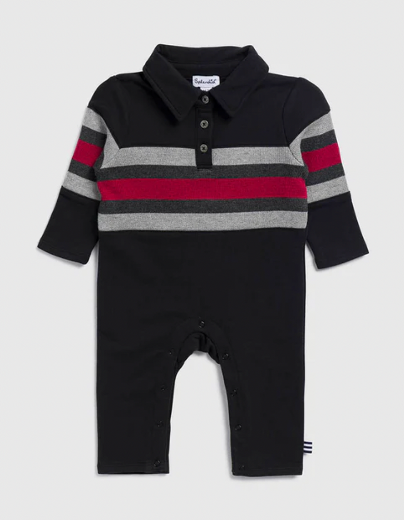 Classic, sporty and just the right amount of cool. This Stripe Polo Onesie takes a timeless polo style and makes it playtime-ready with a one-and-done cozy style.