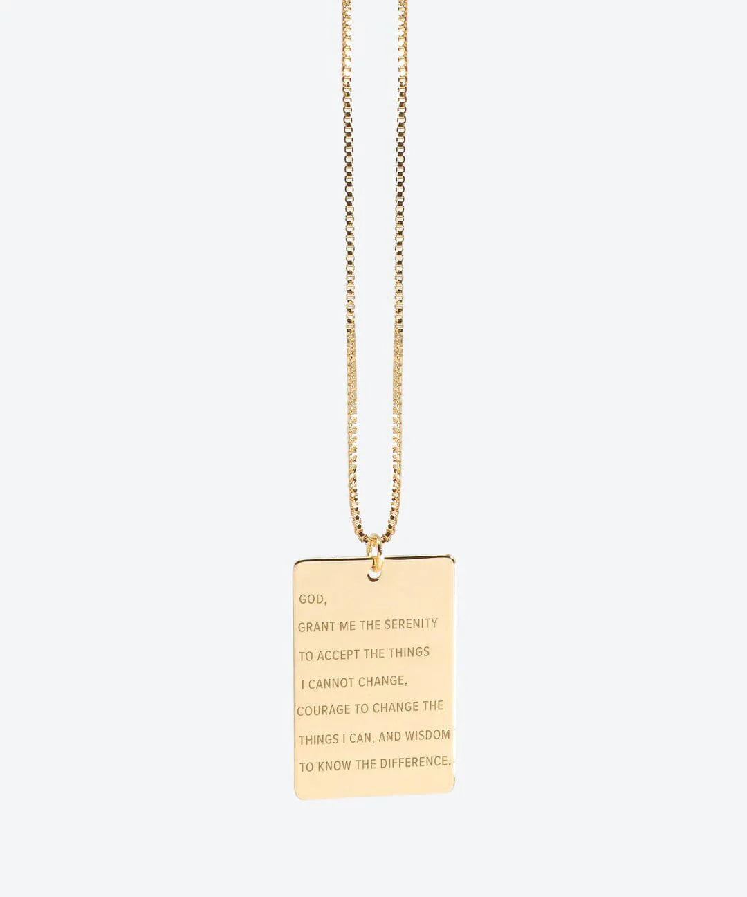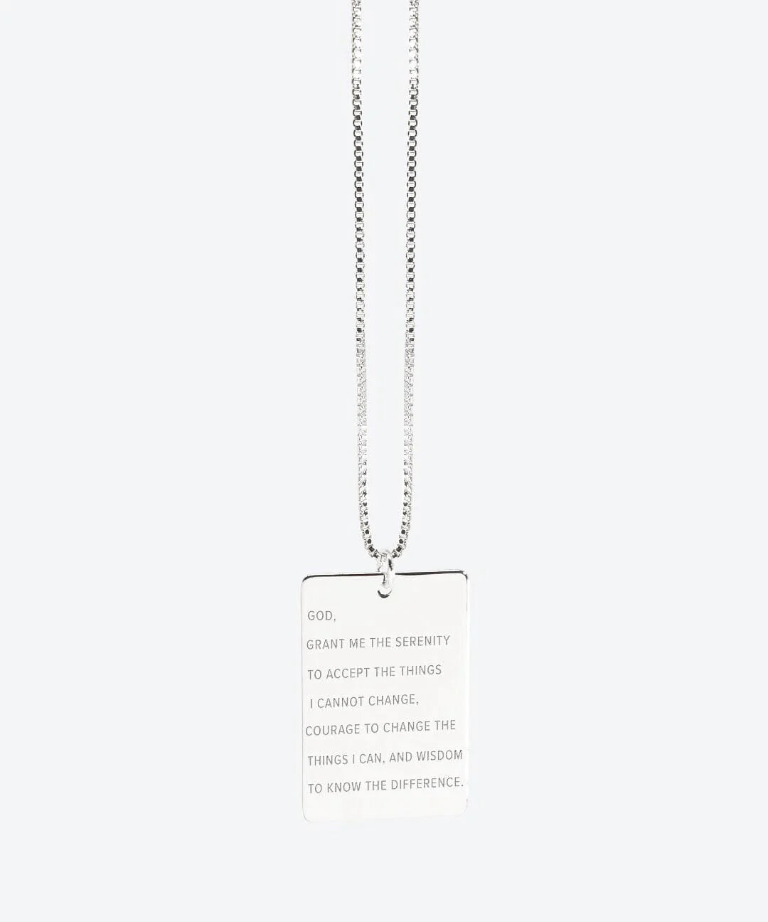 The Serenity Prayer delicate rectangle pendant necklace is a great layering piece and a unique gift for those moments you need a little extra faith.